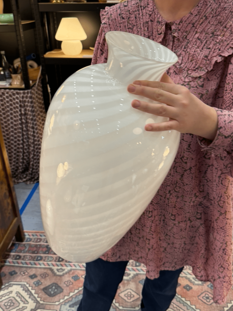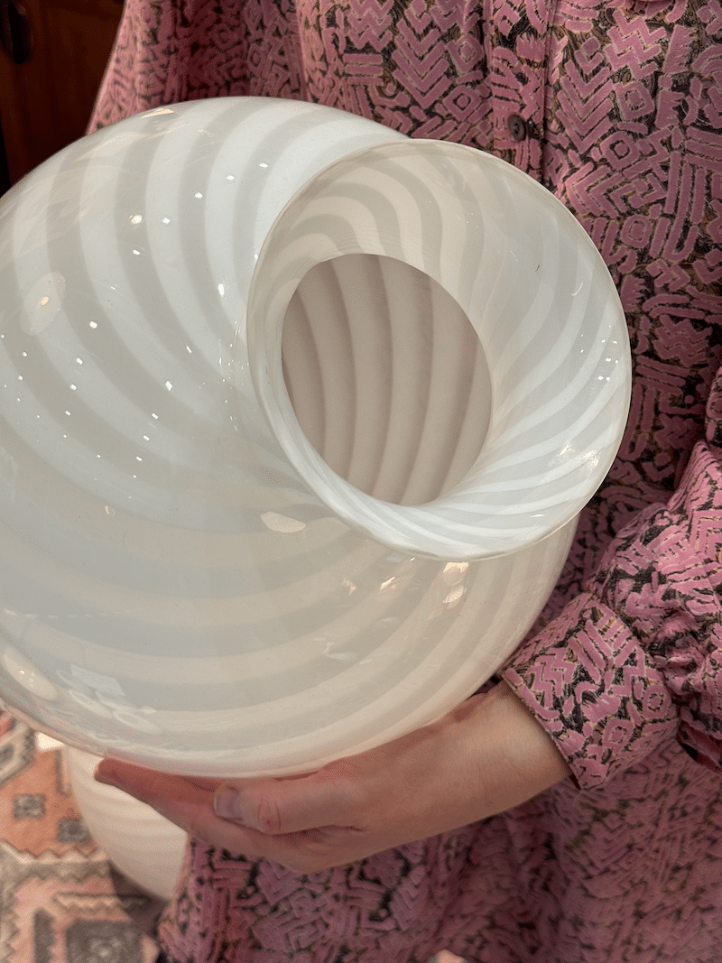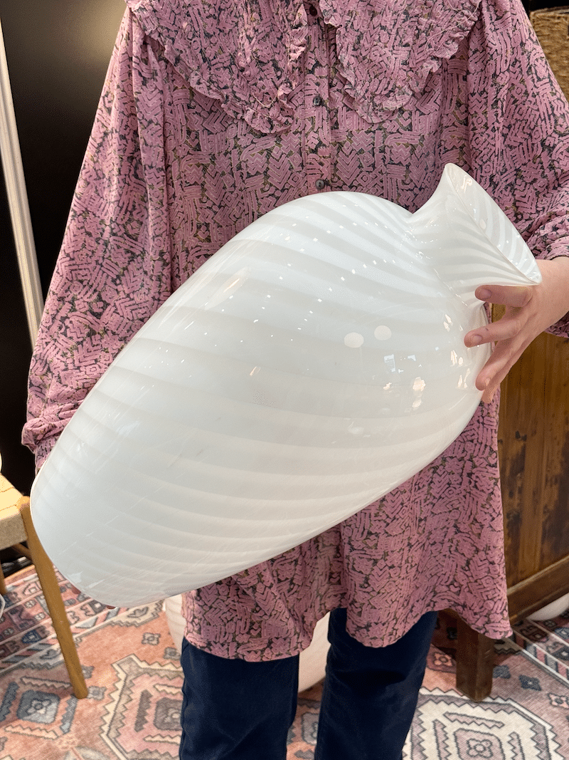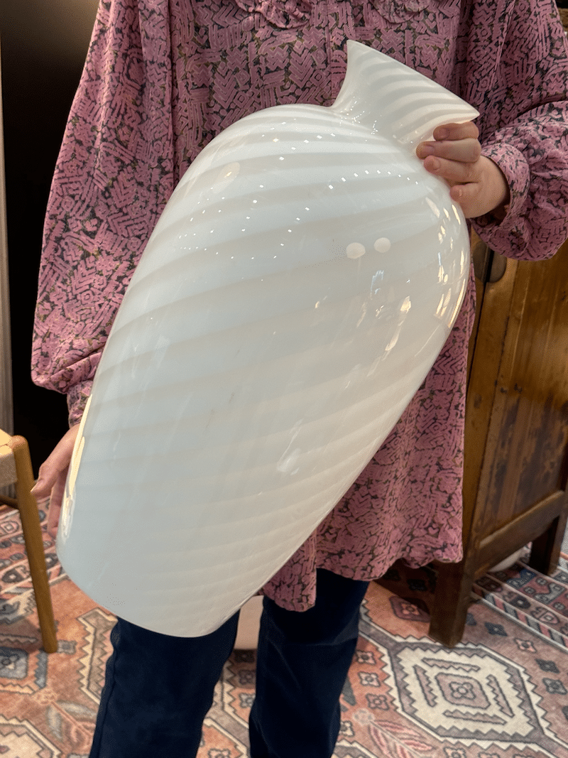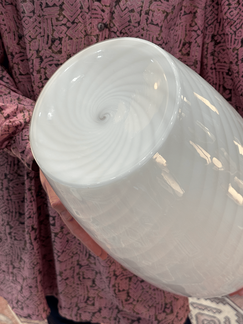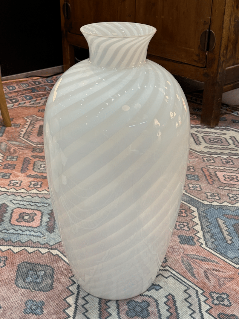 Kæmpe stor vintage Murano gulvvase med hvid swirl.