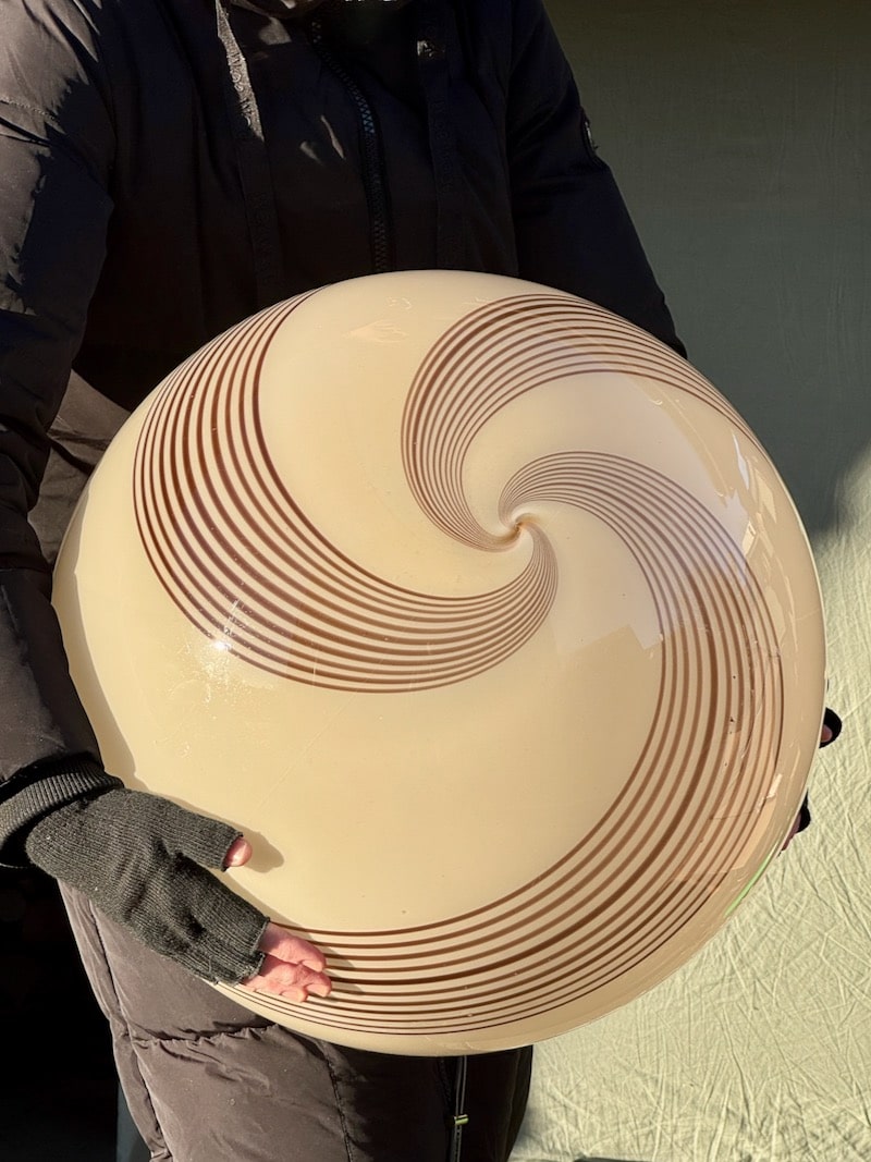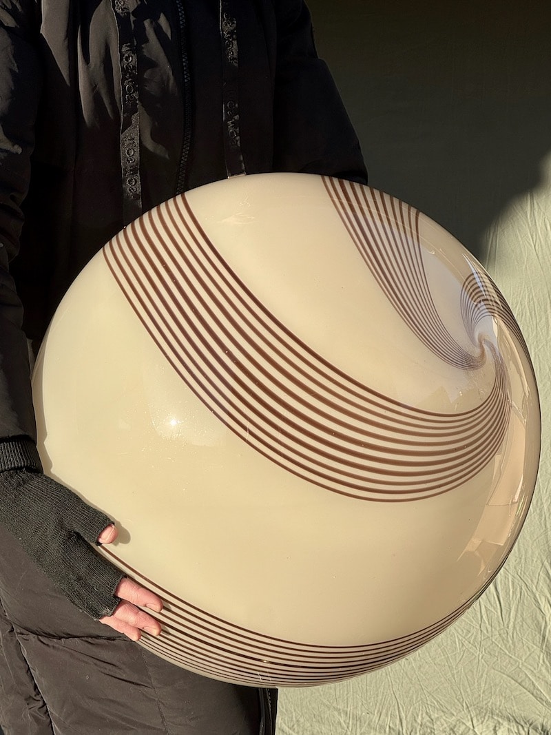 Denne her er virkelig stor. Flotteste store vintage Murano kuppel – det er helt særligt, når lamperne er mundblæst helt op i denne størrelse.