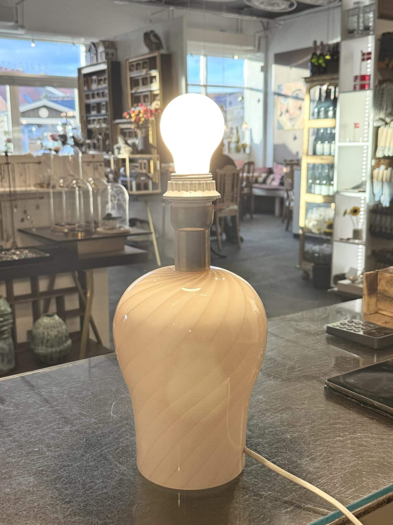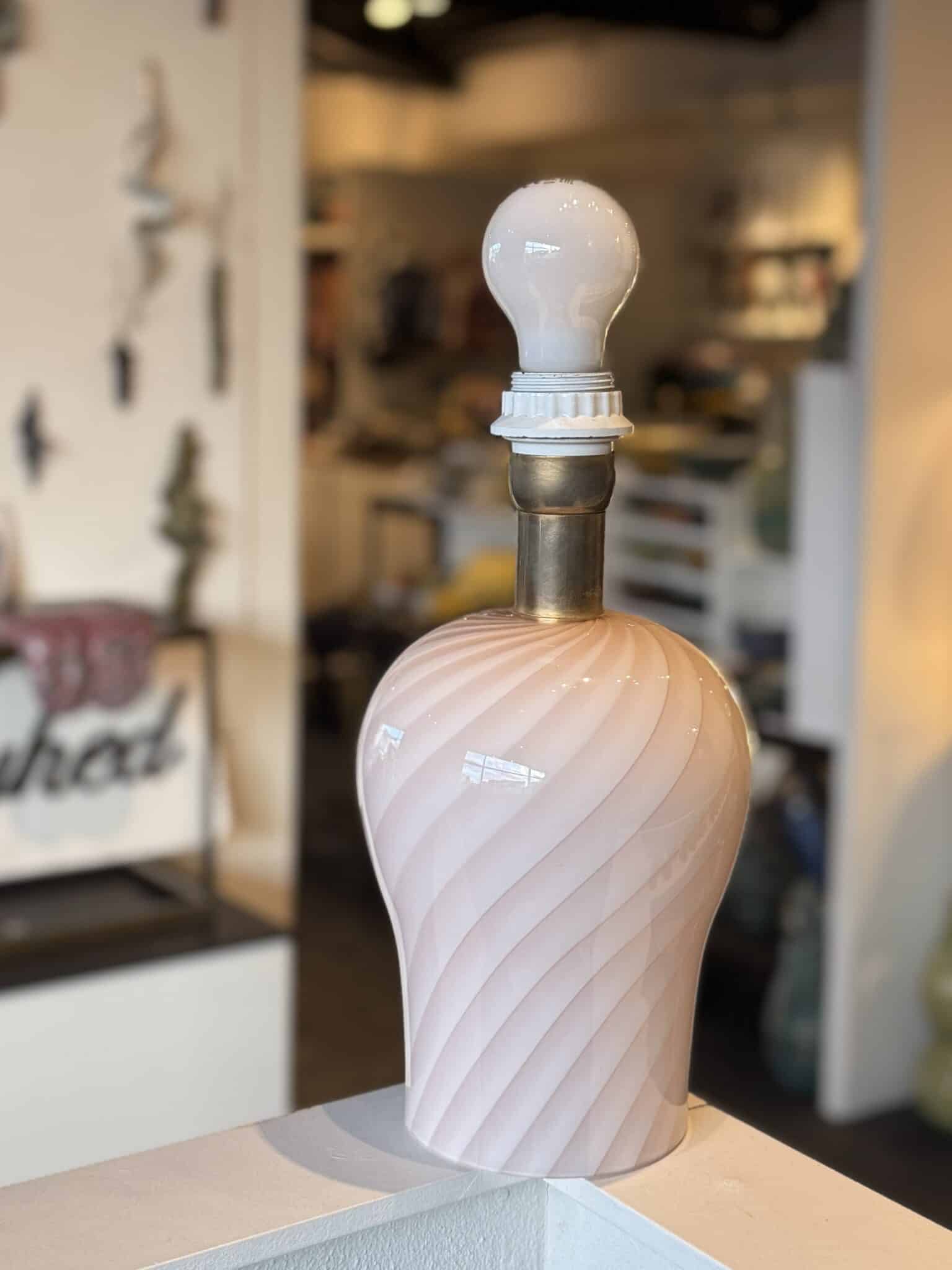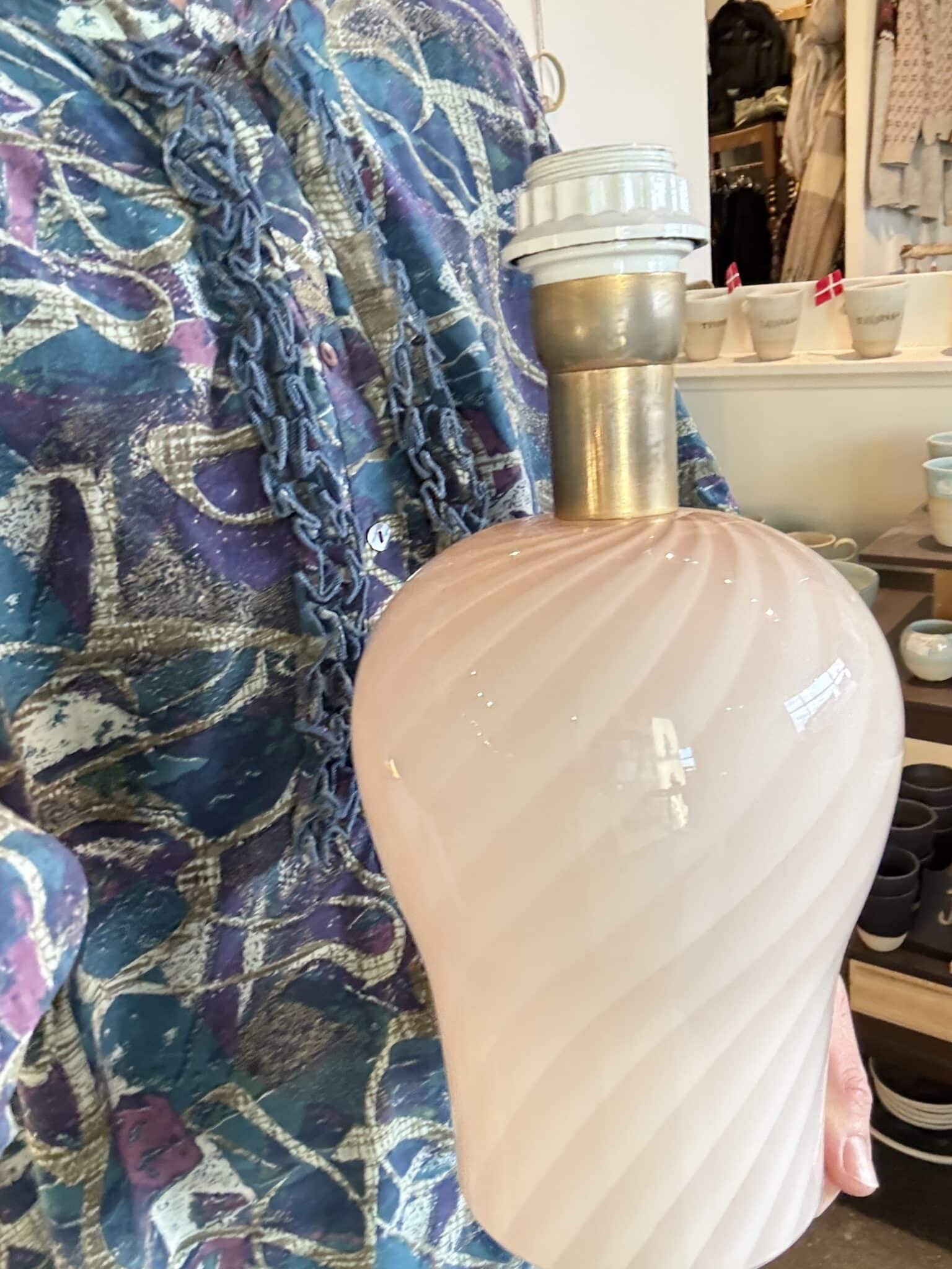 Aj men se lige! Lyserød vintage Murano lampefod – udført med den fineste swirl i glasset. Super smukt håndværk.