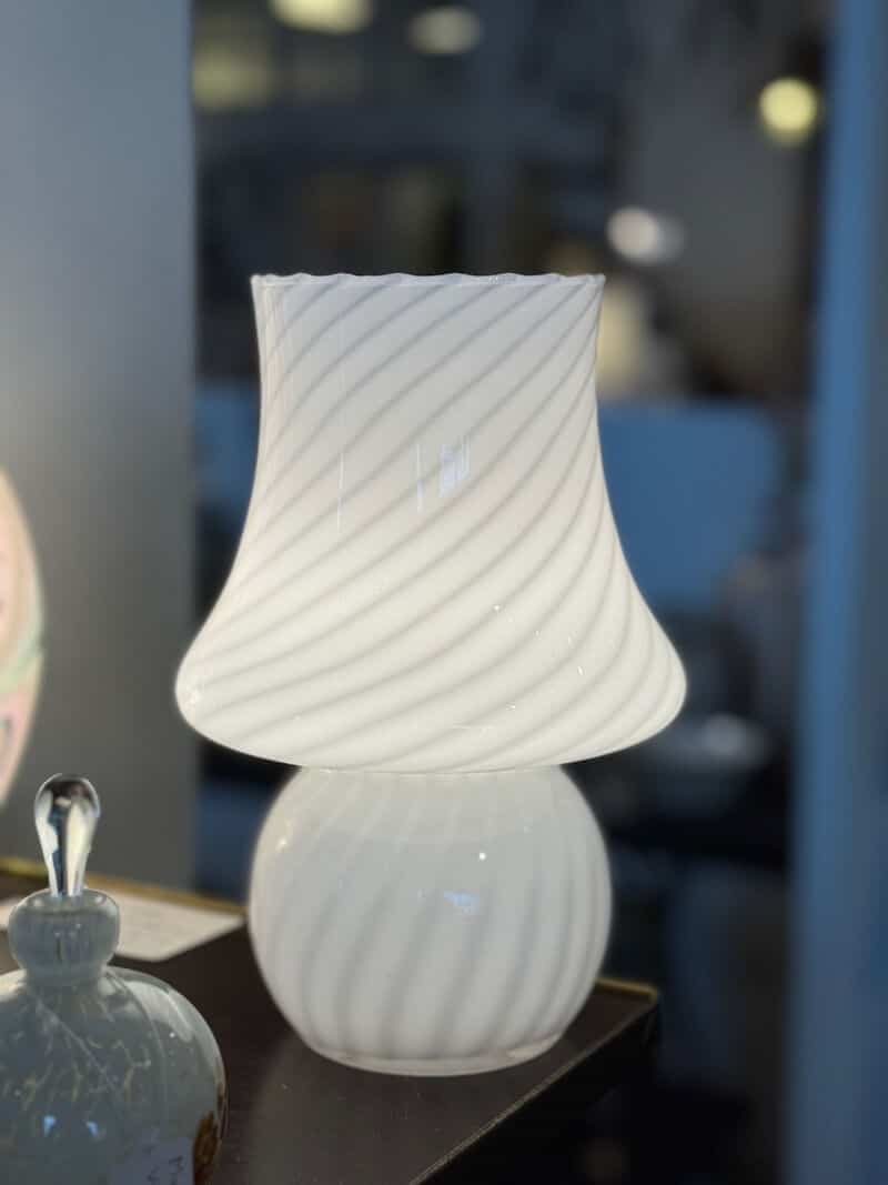 Denne fine vintage Murano lampe er god på en smal placering, da denne model er lidt højere og smallere end den klassiske mushroom lampe.