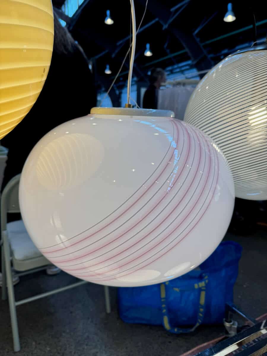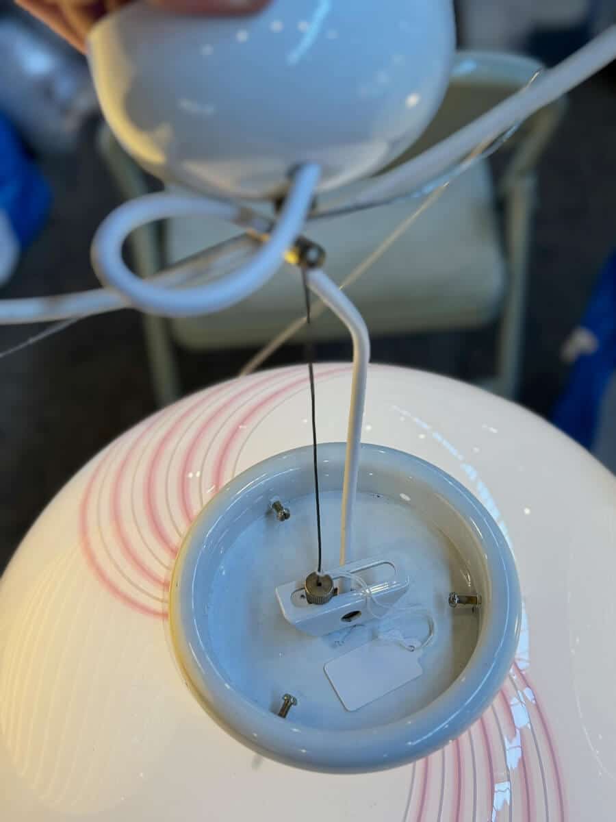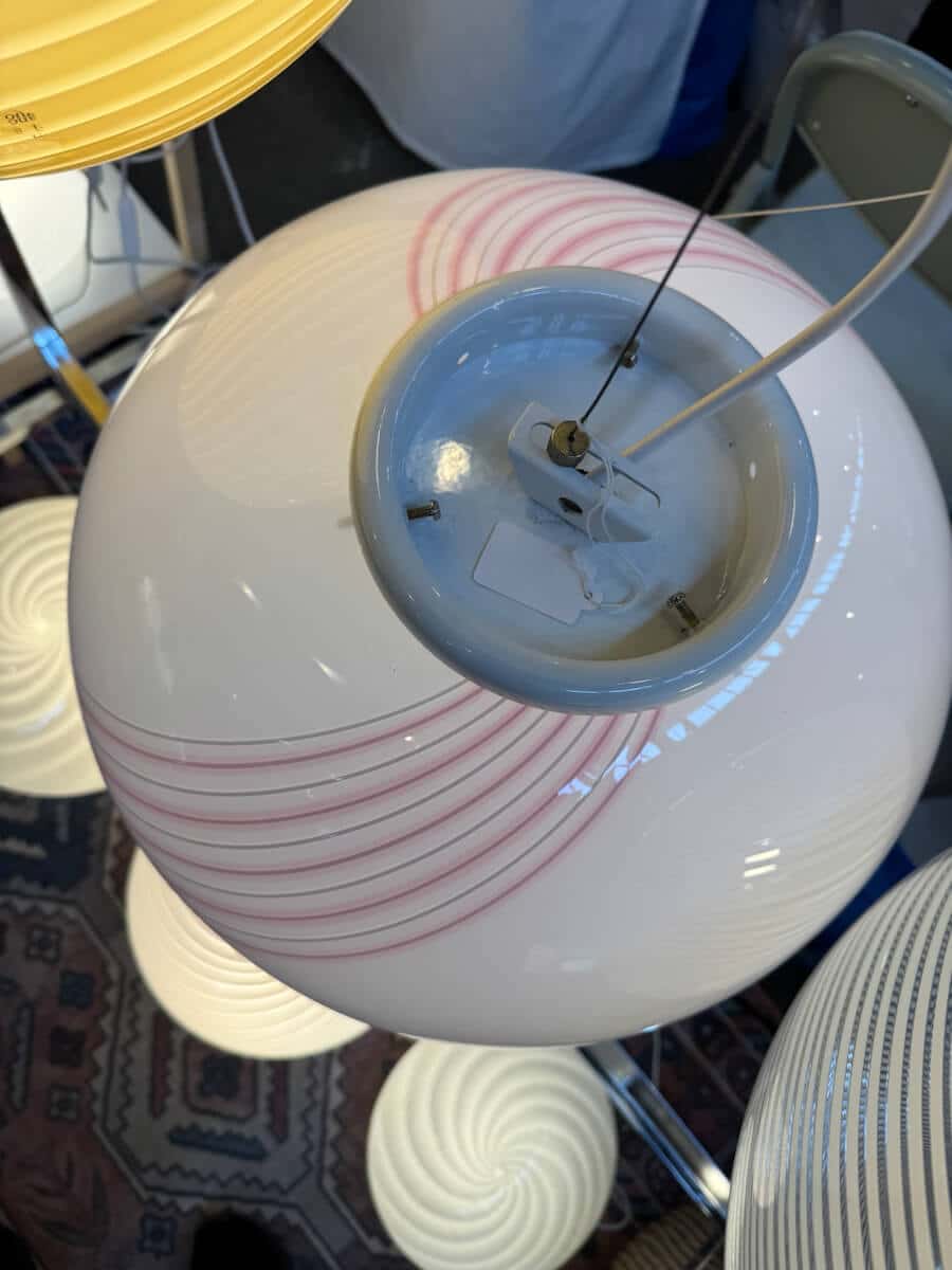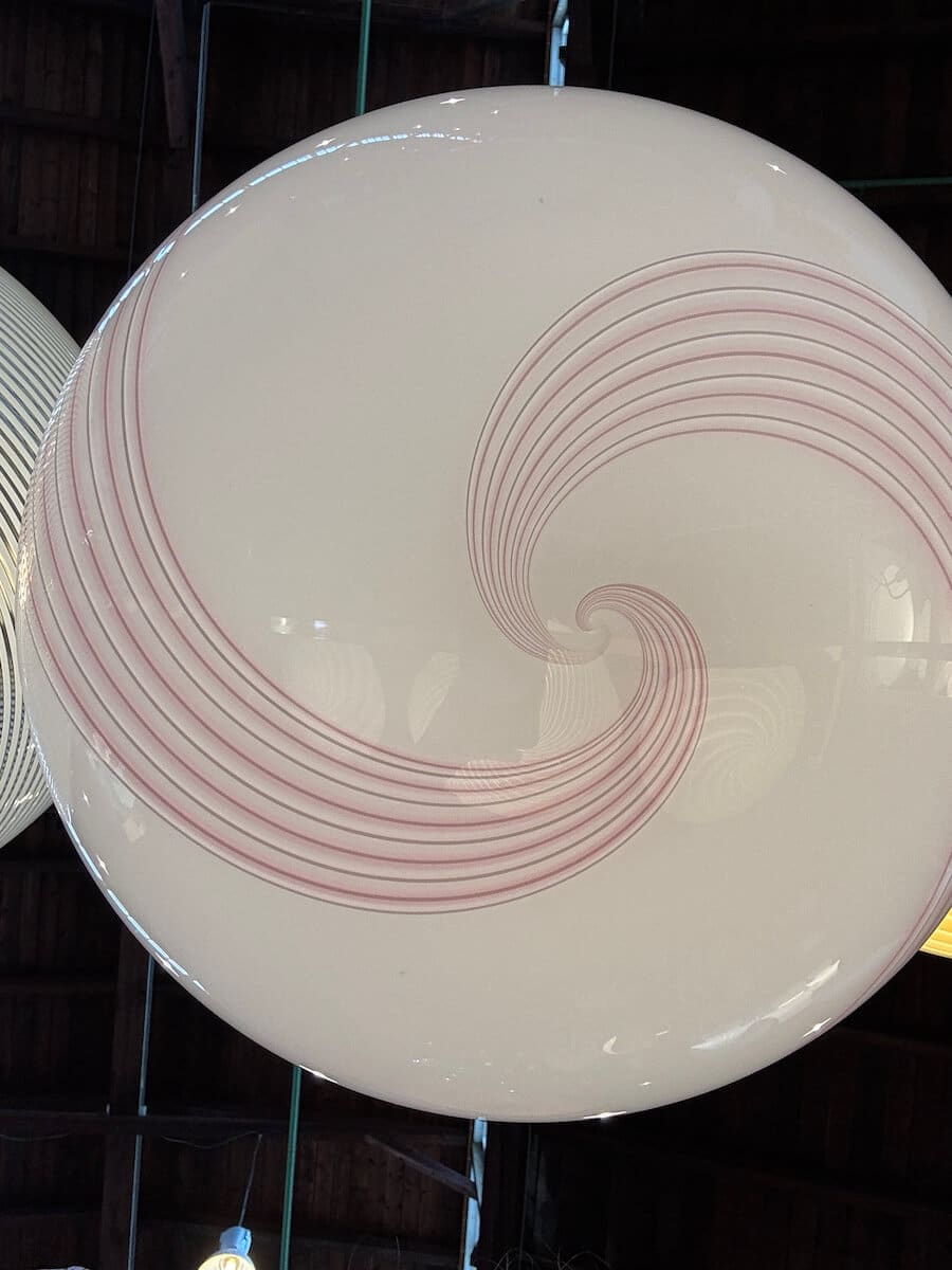 Vintage Murano loftlampe med lyserød stribe