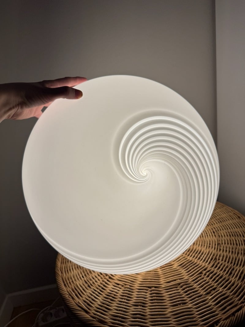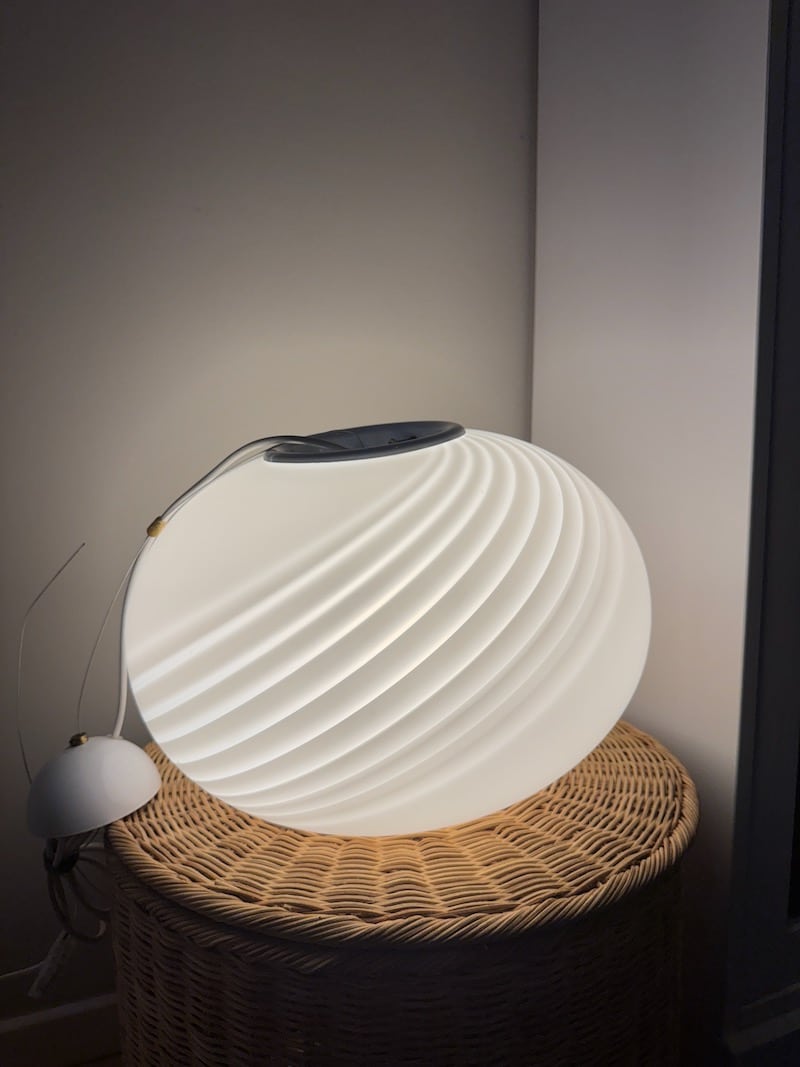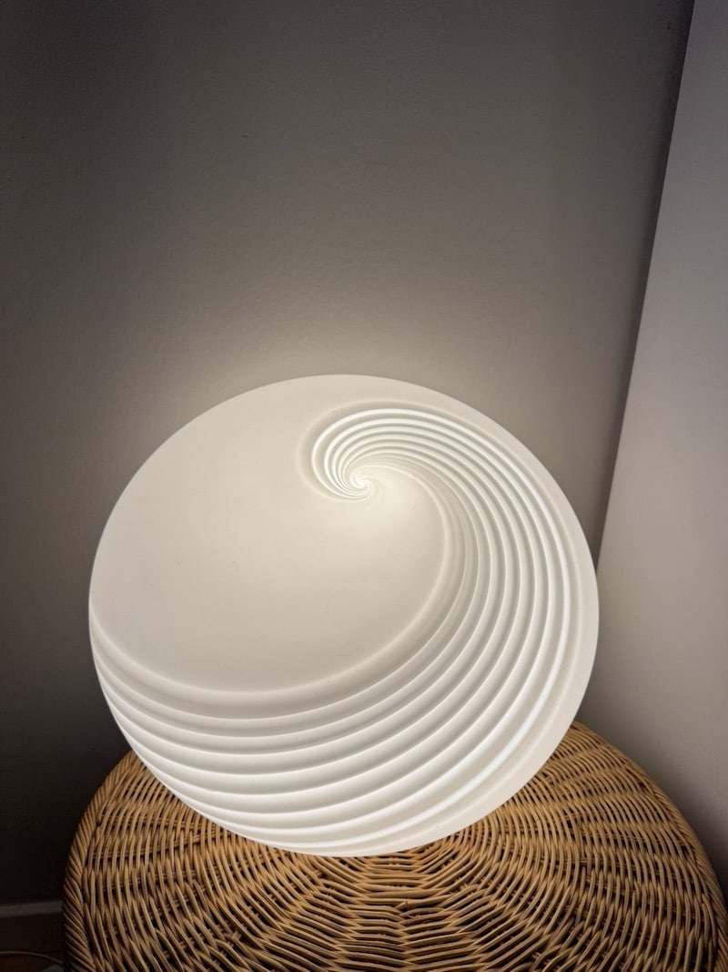 Lampen er med satin finish, og med unik swirl, der ikke er helt magen til de klassiske swirl lamper fra 1970’erne.